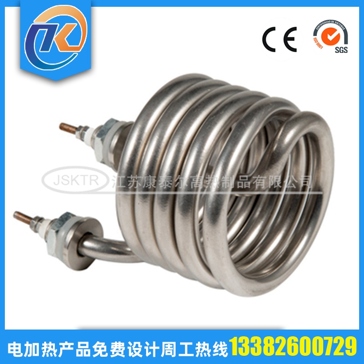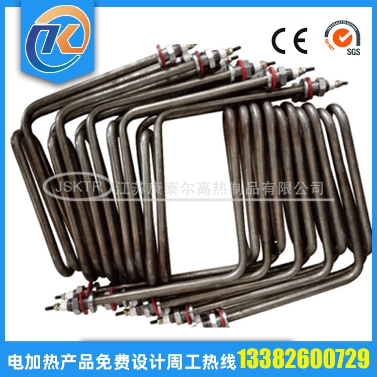 法蘭電加熱管(也稱插入式電加熱器):是采用U型電熱管,依據(jù)加熱的空氣或者水油等來設(shè)計,按照功率配置要求裝配在法蘭蓋上,插入需加熱物料中,當(dāng)介質(zhì)溫度達(dá)到工藝要求時,持續(xù)保持加熱;而當(dāng)發(fā)熱元件超溫或低液位時,發(fā)熱元件的聯(lián)鎖保護(hù)裝置立即切斷加熱電源避免發(fā)熱元件燒壞,延長使用壽命。 應(yīng)用范圍 法蘭電熱管訂購參數(shù): 1.電壓,功率; 2.材質(zhì); 3.管徑; 4.長度; 5.數(shù)量; 6.加熱什么,長期溫度多少; 7.加熱管類型;